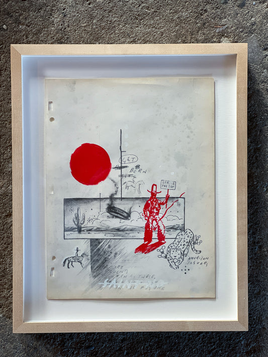 SAINT NO "Get Born" | 8.5x11 acrylic, pencil on found paper in natural wood frame