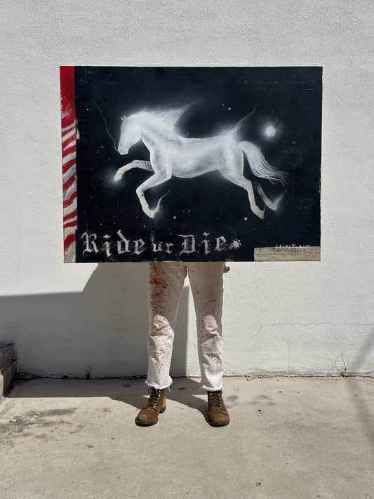 SAINT NO | "Ride or Die" 3'x4' | Acrylic, gesso, spray paint, enamel on canvas