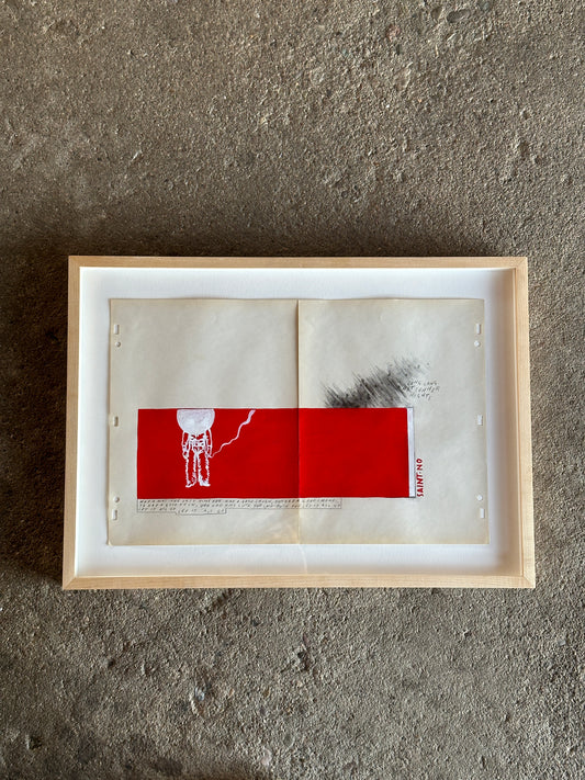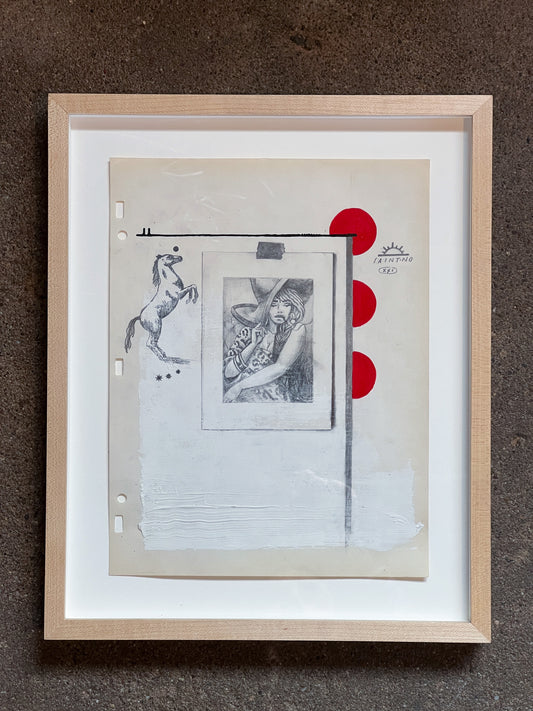 SAINT NO "Long Hot Summer Nights" | 16.75"x11" pencil, acrilic and gesso on found paper in natural wood frame