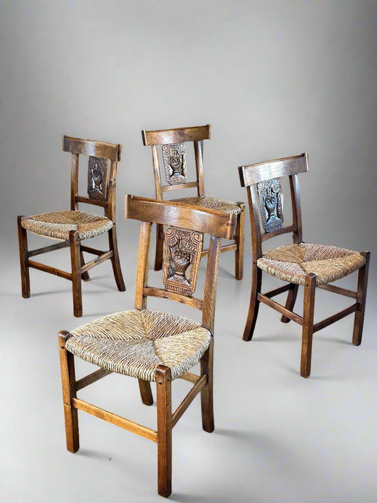 Vintage Spanish Rush Seat Dining Chairs (set of 4) | Made in Spain