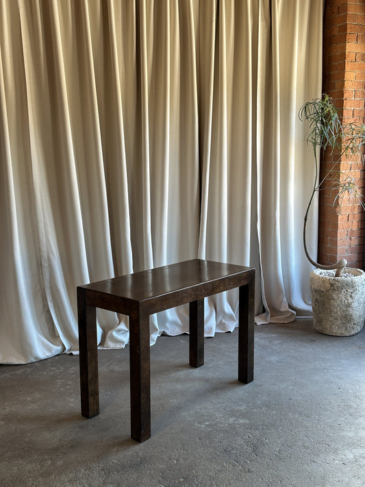 Burl Wood Expandable Parsons Dining Table by John Widdicomb